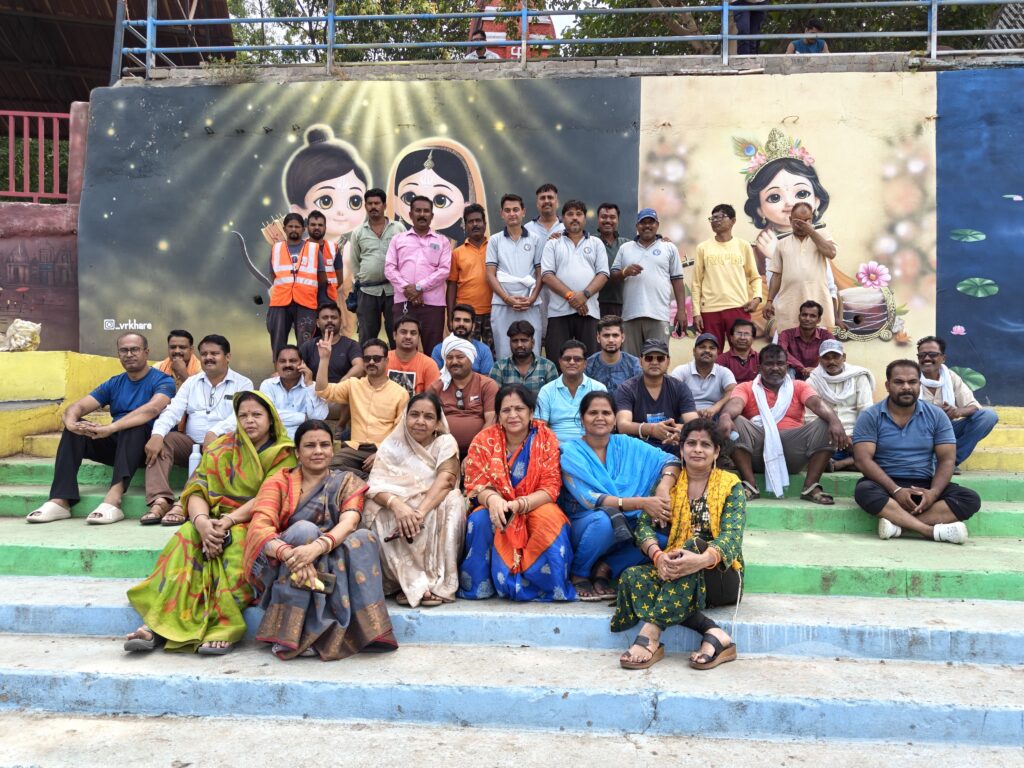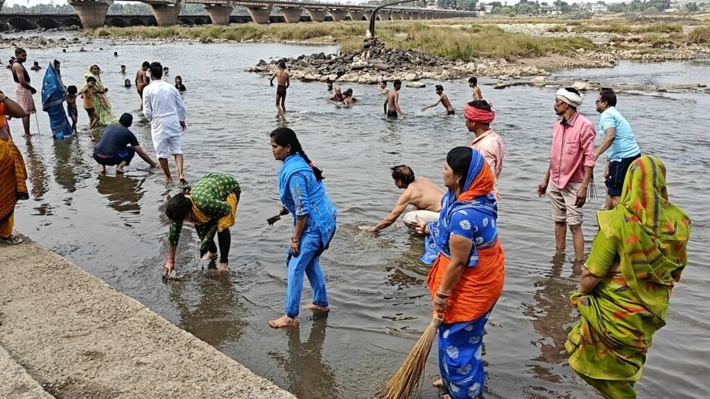 - रपटाघाट के सफाई कार्य में उत्साहपूर्वक सहभागिता कर रहे लोग
