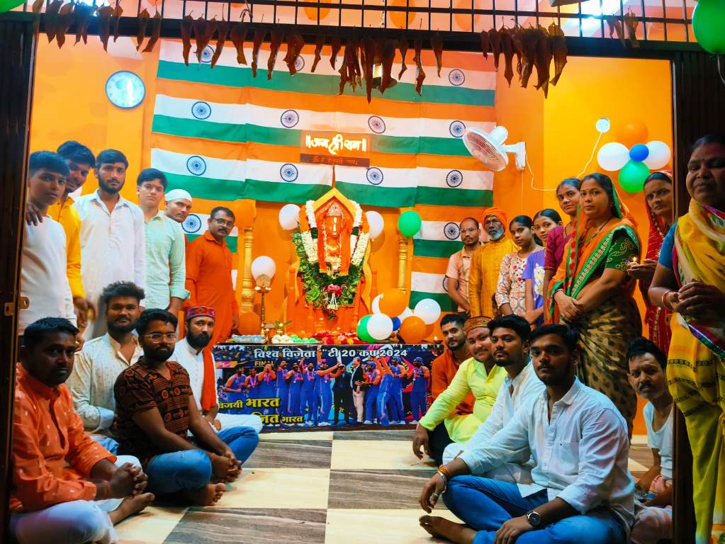 मंडला महावीर न्यूज 29. बम्हनी के वार्ड नंबर 11 के लखेरा मोहल्ला में स्थित संकट मोचन हनुमान मंदिर में मंगलवार को अंतर्राष्ट्रीय टी-20 विश्व कप के सभी मैचों में अपराजित रह कर भारतीय टीम द्वारा फाइनल मैच में विजयी हासिल कर विश्व विजेता का खिताब जीता।