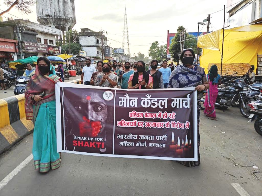 महिलाओं ने बताया कि हमारा विरोध प्रदर्शन आगे भी जारी रहेगा और पश्चिम बंगाल सरकार से पीडि़त परिवार को न्याय दिलाने और आरोपियों के ऊपर कड़ी कार्यवाही के लिए हमारा जारी रहेगा। इस अवसर पर भाजपा जिला मंत्री श्रीमति अनीता तिवारी, महिला मोर्चा जिला महामंत्री श्रीमती शिखा श्रीवास्तव, महिला मोर्चा जिला मंत्री श्रीमती सरिता मिश्रा, नगर अध्यक्ष श्रीमती उमा यादव, श्रीमती सीमा मरावी श्रीमती गंगोत्री बडग़ैया, श्रीमती पुष्पा ज्योतिषी, श्रीमती शीतल वैष्णव, श्रीमती बबिता अधिकारी, श्रीमती सुनीता सैयाम, श्रीमती अर्चना देशमुख, श्रीमती कल्पना बरमैया, श्रीमती अंजलि मिश्रा एवं महिला मोर्चा की समस्त बहनें उपस्थित रहीं।