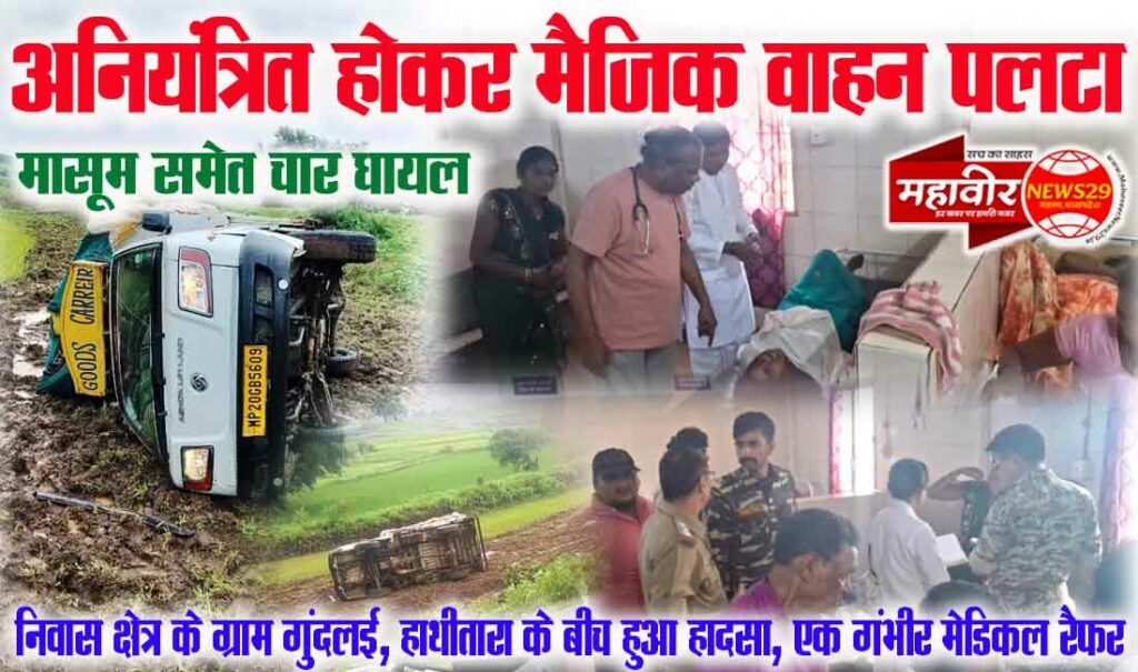 - अनियंत्रित होकर मैजिक वाहन पलटा, मासूम समेत चार घायल