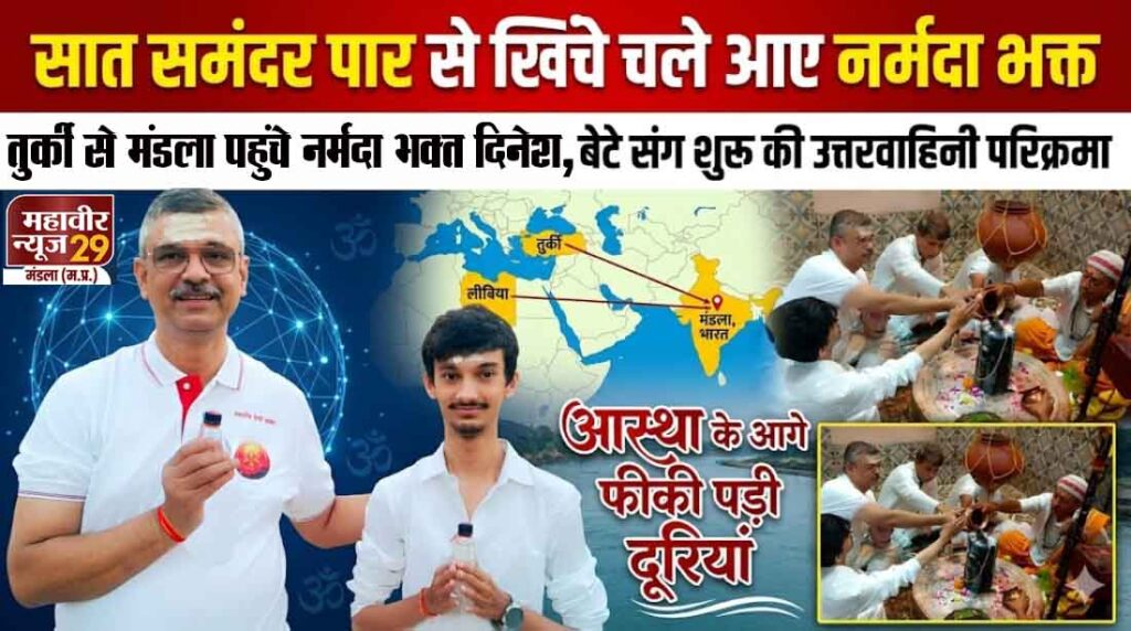 मंडला महावीर न्यूज 29. “जहाँ चाह, वहाँ राह” की कहावत को चरितार्थ करते हुए इन दिनों आदिवासी बाहुल्य मंडला जिले में माँ नर्मदा के प्रति अटूट आस्था का अनूठा संगम देखने को मिल रहा है। यहाँ के परिक्रमा पथ पर न केवल स्थानीय श्रद्धालु, बल्कि सात समंदर पार विदेशों में रहने वाले भारतीय मूल के लोग भी माँ नर्मदा की भक्ति के वशीभूत होकर खिंचे चले आ रहे हैं। इसी कड़ी में तुर्की में कार्यरत वरिष्ठ आईटी प्रोजेक्ट मैनेजर दिनेश फड़के ने अपनी व्यस्त पेशेवर जिंदगी से समय निकालकर मंडला में माँ नर्मदा की उत्तरवाहिनी परिक्रमा का संकल्प लिया है।