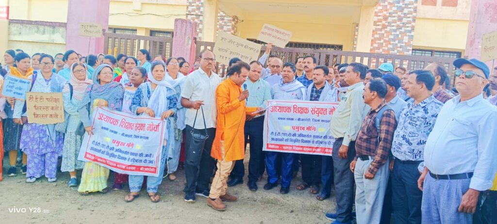 शिक्षक पात्रता परीक्षा के विरोध में शिक्षकों का हल्लाबोल
