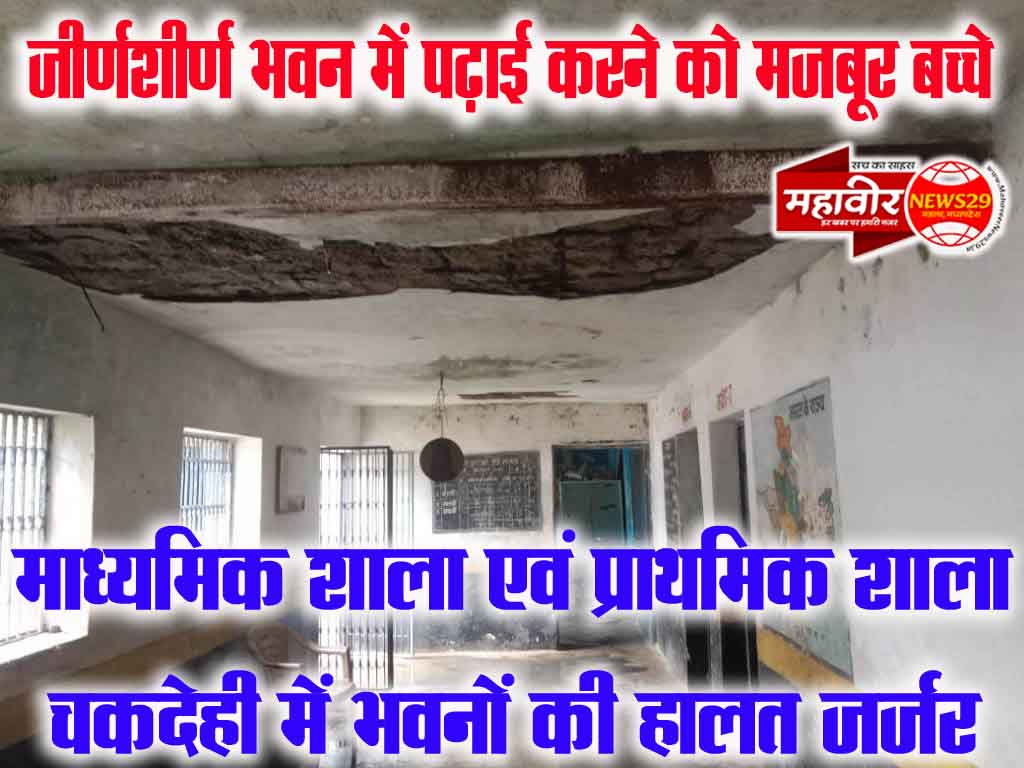 जीर्णशीर्ण भवन में पढ़ाई करने को मजबूर बच्चे